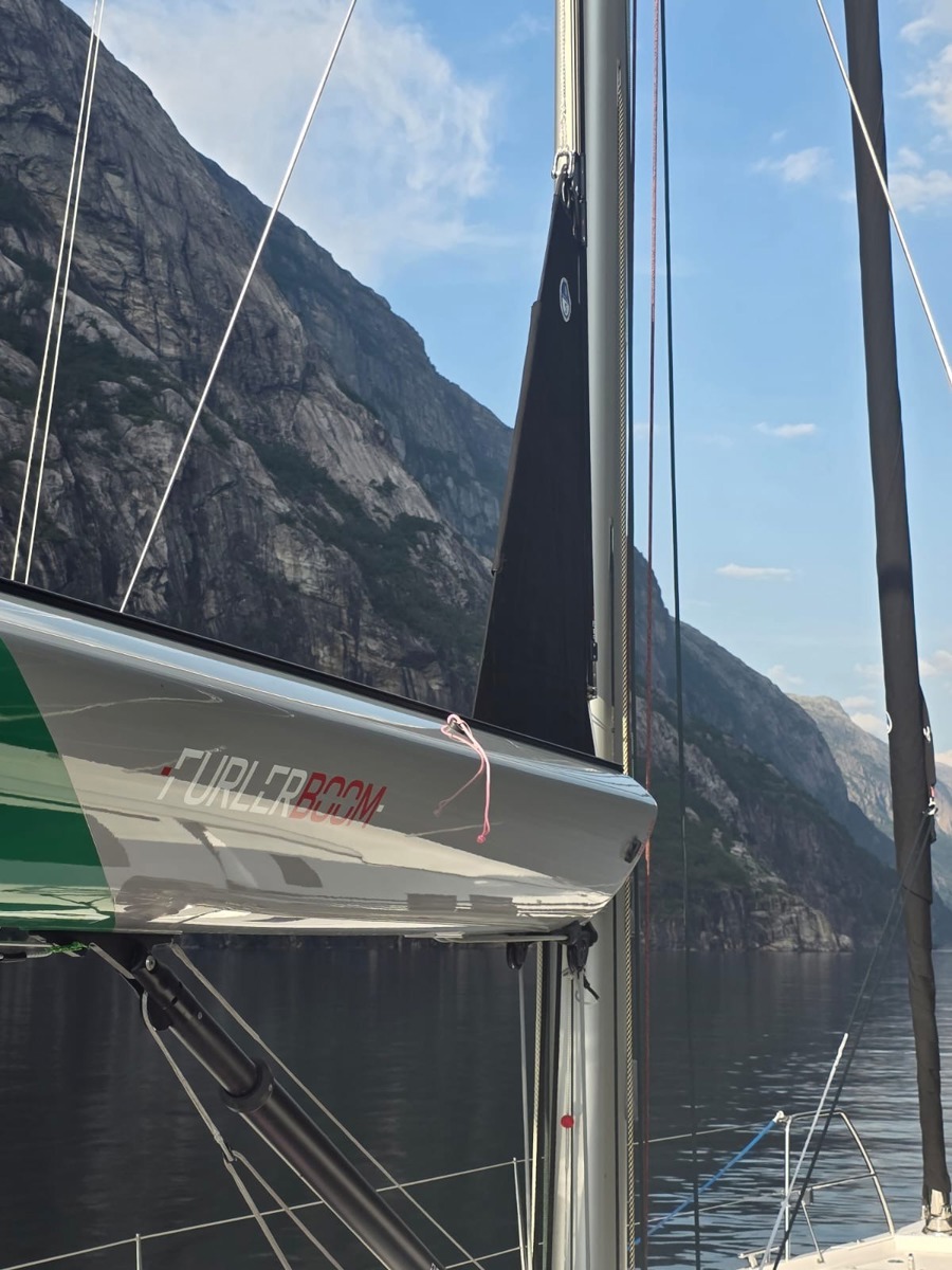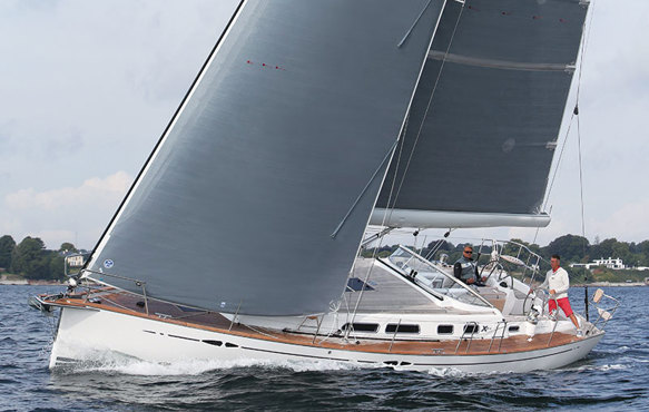 Najad 570 with her driven Furlerboom T-45. The main halyard make the handling to a mere push button action.